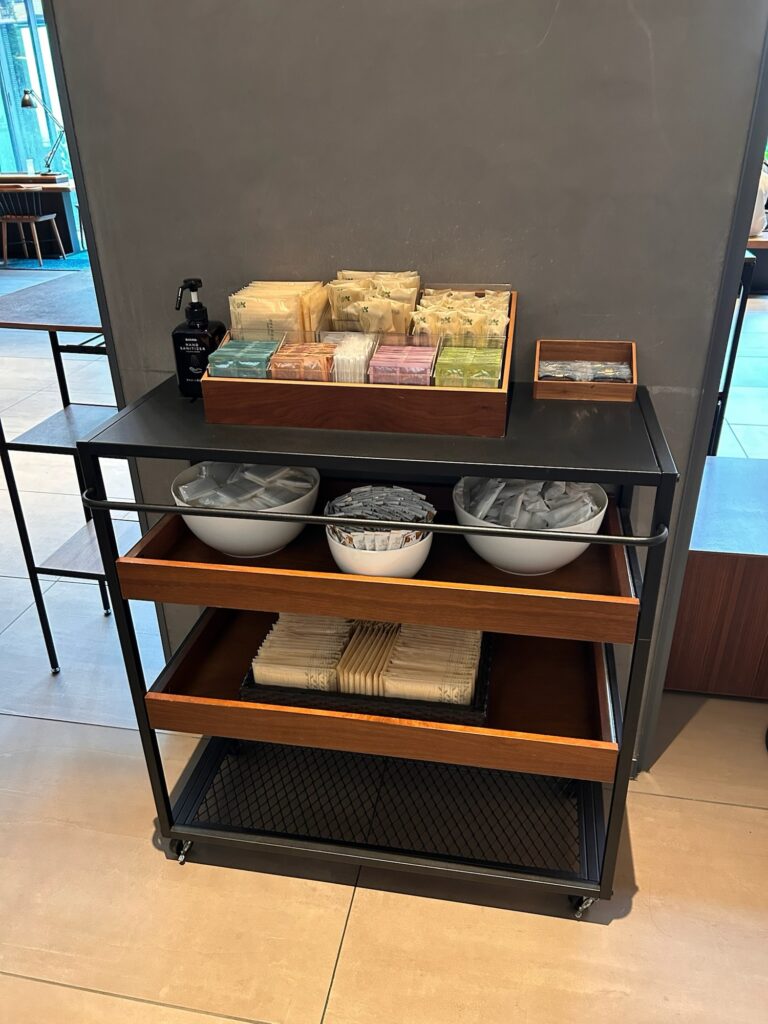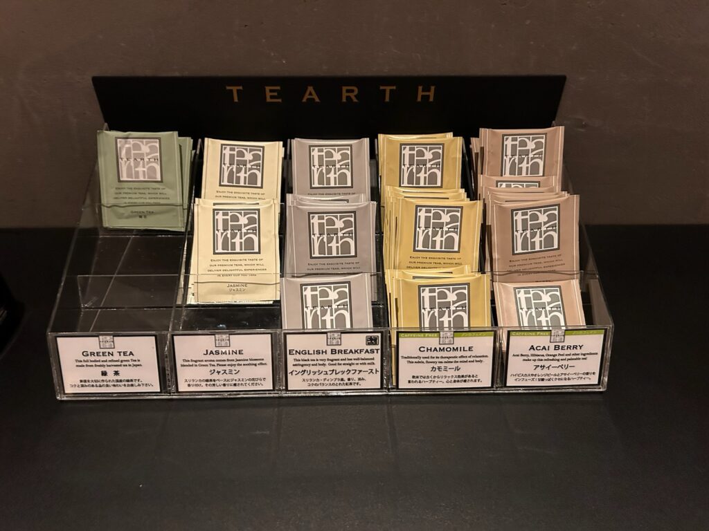 アメニティ・ティーパックはロビーで必要な分を自分で選んで取って、部屋に持って帰るスタイルでした!アメニティの種類も豊富で、選ぶのも楽しかった!