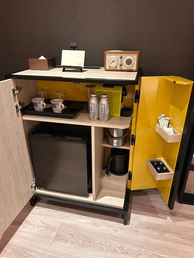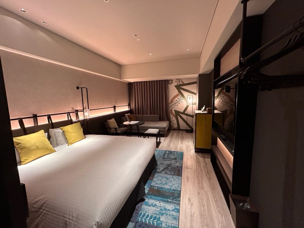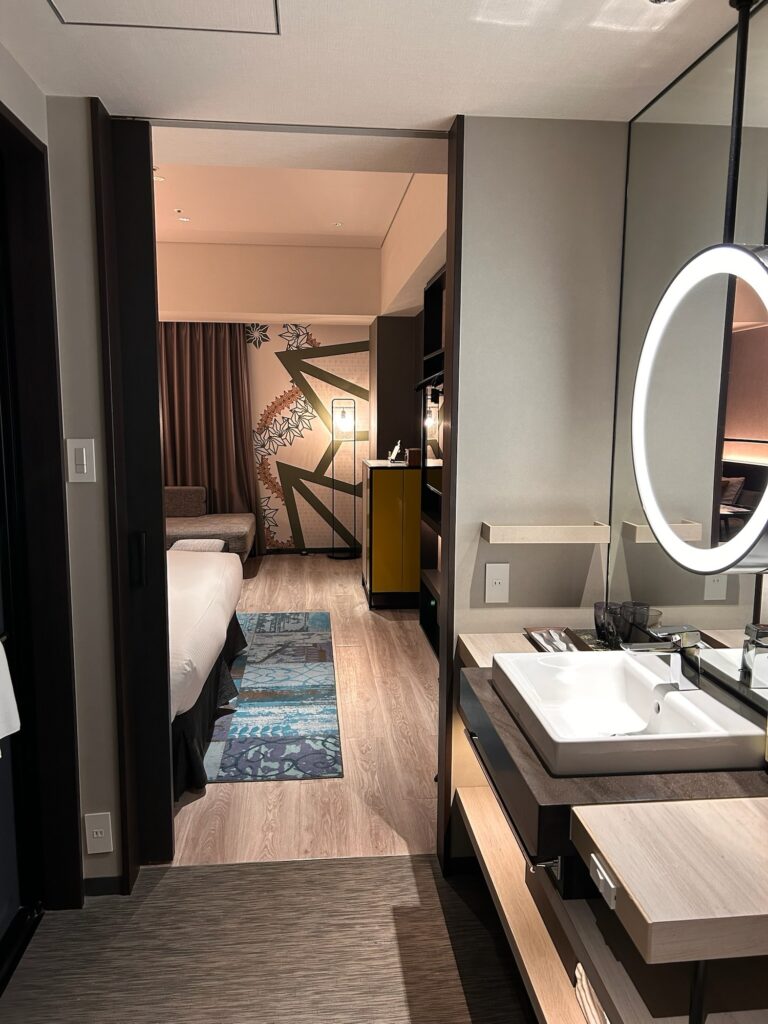 新しいホテルなので、今までの常識を覆して、オープンタイプの洗面台や、オープンクローゼット、冷蔵庫はキャビネットに配置されているなど、平米数は狭いながらも様々な工夫がされているので、空間にゆとりがあり、非常に快適でした!