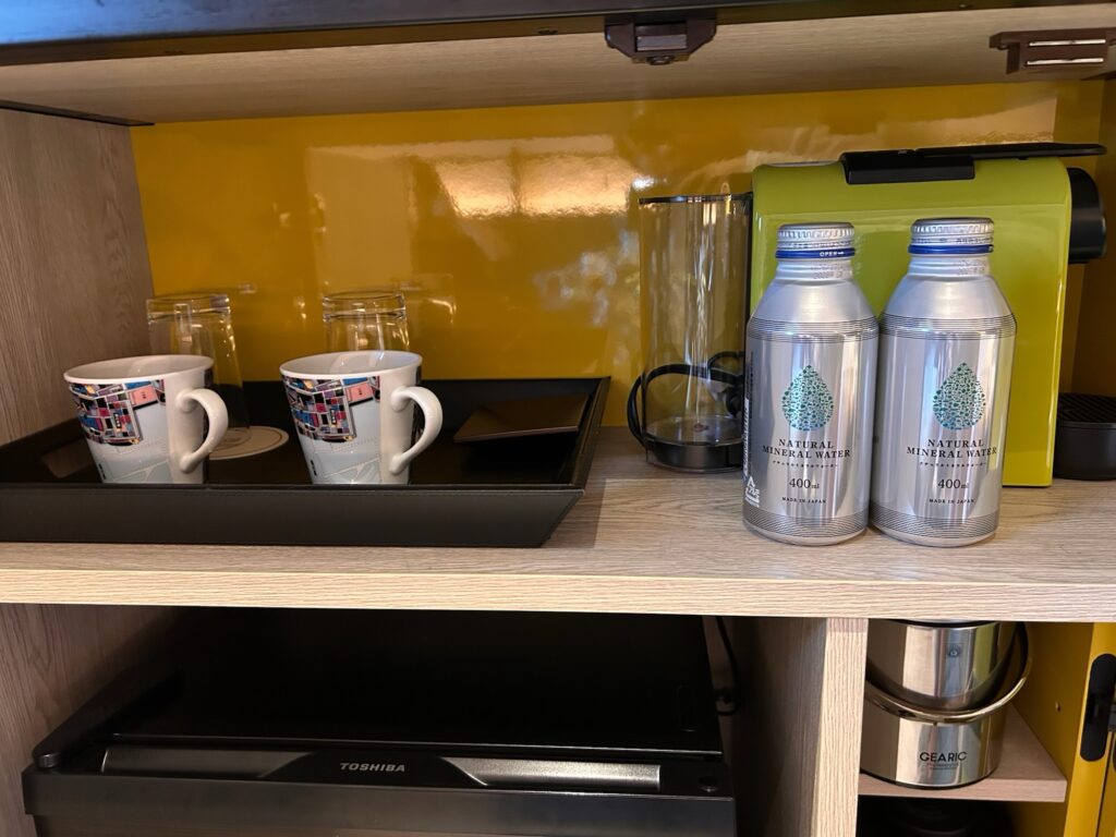 - 客室備品:コーヒーメーカー(NESPRESSO)/Bluetoothスピーカー/加湿機能付空気清浄器/液晶テレビ/電話機/高速インターネット無線(無料)/ セーフティボックス/時計/冷蔵庫/電気ケトル/個別空調設備/ドライヤー/温水洗浄便座/ナイトウェア/タオル類/ハンガー/消臭スプレー/プラスチックタンブラー/マグカップ/風呂椅子/バゲージラック/読書灯