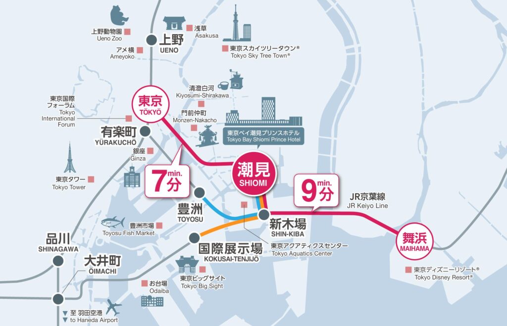 - 電車でのアクセス: 京葉線 潮見駅より徒歩1分
